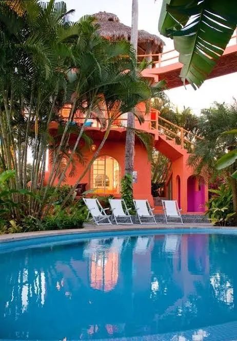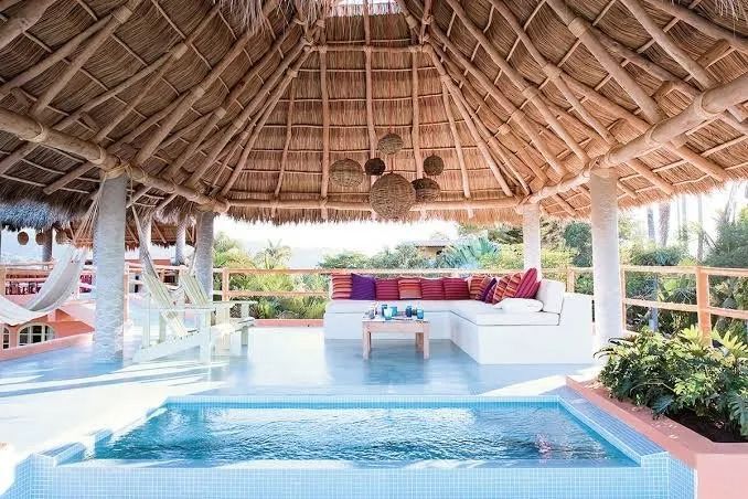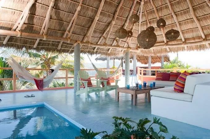 Elle dispose de quatre chambres à coucher joliment décorées, d'une piscine avec son propre jardin, d'un bain à remous au sommet du rooftop avec vue sur l'océan et d'un salon plein air de style mexicain ainsi que d’une cuisine / salle à manger reliés de façon spectaculaire par un pont.